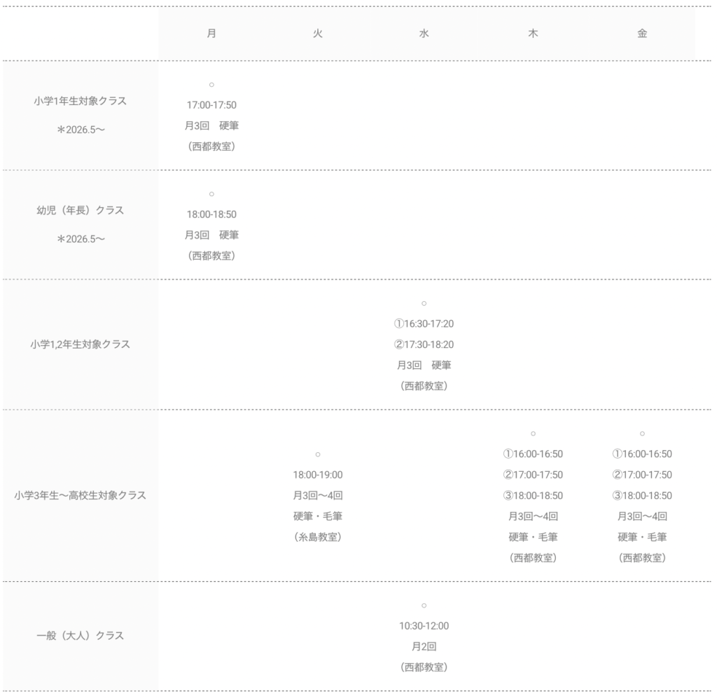 オンラインお稽古・通信制お稽古も書道会入会後の階級習得可能その際は別途会費あり。